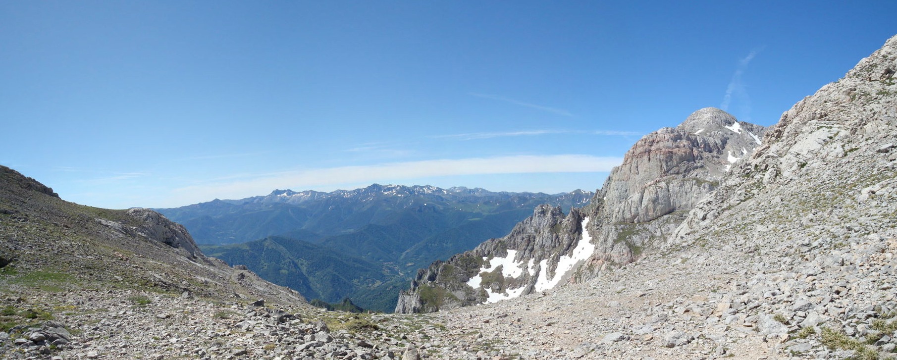 Cima relativamente modesta (2250 msnm.), de la que, por aquellos momentos pensaba que sería... "como para ir calentando". Al fondo, a la izquierda, la Silla del Caballo Cimero: