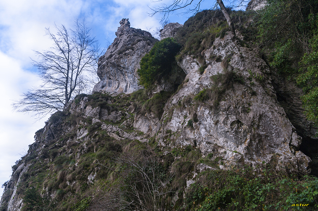Abandonamos Biamón, acompañados por el ganadero vecino, que nos dice que él es del pueblo de Viboli, del que parte el sedo de mis desvelos. Aprovecho para preguntarle sobre la "presunta" peligrosidad del mismo y nos dice que, efectivamente, un traspiés allí puede ser fatal, pero que recientemente lo han "equipado" con cadenas en algunos sitios. Sentimientos encontrados. Por un lado, me da la tranquilidad que aportan como elemento de seguridad y por otro, lo priva del encanto o aliciente que aporta el riesgo. En fin, nos despedimos de él y tomamos el Camín de la Tobera, siempre en fuerte ascenso, que nos llevará a la Peña Salón, primero y secundario objetivo del día: