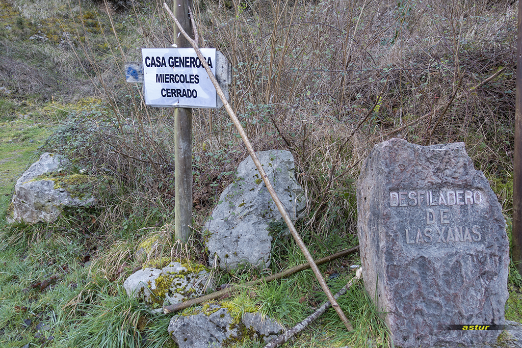 Se le conoce como "el pequeño Cares" por su parecido con el mismo (salvando las distancias). Es una senda tallada en la roca a mediados del siglo XX con la intención de comunicar los pueblos de Pedroveya (que es donde está el famoso restaurante), Dosango y La Rebollada con Villanueva (que es el pueblo que se puede ver al fondo en la foto anterior). El Desfiladero de Las Xanas fue declarado Monumento Natural en el año 2002 Es una imponente garganta fluvial de más de 2 kms. de longitud excavada por el arroyo Viescas.